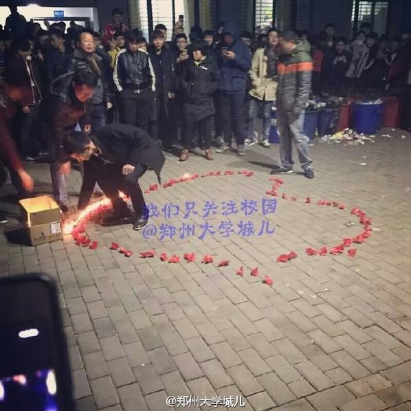 有時(shí)候表白失敗的因素不一定是被拒絕了,還有可能是學(xué)校領(lǐng)導(dǎo)的滅火器!在鄭州財(cái)經(jīng)學(xué)院,女主還沒來,一場(chǎng)還未開始的表白就已經(jīng)結(jié)束了,心疼那個(gè)男同學(xué),估計(jì)現(xiàn)在那帥男已經(jīng)哭暈在廁所,嗚,領(lǐng)導(dǎo)“法?!蹦氵€我愛情。