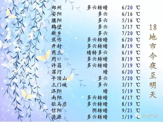 今天全省大部最高溫度在15℃以上,固始、駐馬店、商城等地更是突破20℃。
