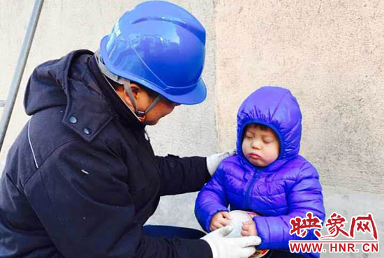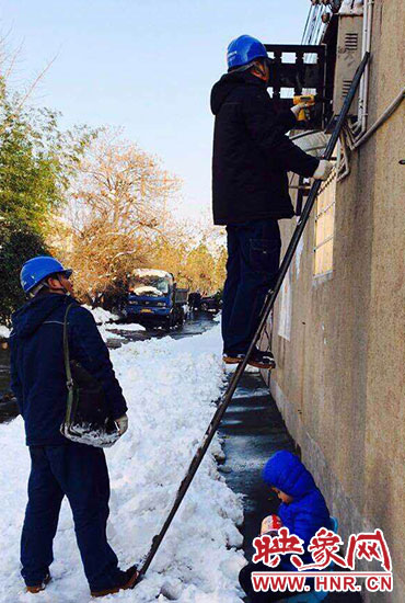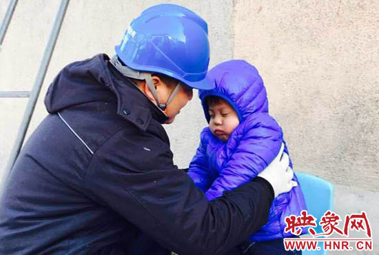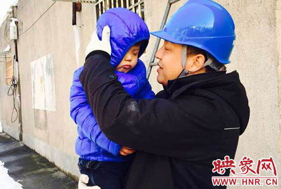 “你兒子睡著了,快下來(lái)吧?!?1月23日,正在架電線的新密供電公司岳村供電所員工李磊聽(tīng)到同事叫他。李磊的兒子叫李昕龍,今年5歲,由于李磊妻子不在家,幼兒園又因雪放假,沒(méi)人照看李昕龍,李磊只好帶著他去上班。正在安裝智能表的李磊,聽(tīng)到同事叫他,趕緊朝下一看,兒子在冰天雪地里已經(jīng)睡著了。他急忙從梯子上下來(lái),把孩子抱起來(lái),由于剛睡著,孩子竟然沒(méi)有醒來(lái),他只好繼續(xù)抱著孩子睡覺(jué)。