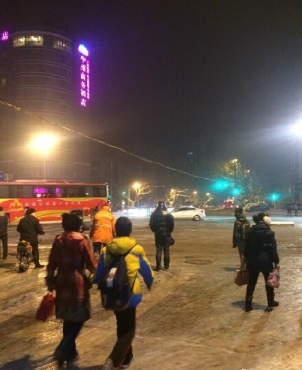 雪停了,但是路上的雪被車碾軋之后比較光滑。@大河寒江雪 :南陽(yáng)路快速公交站,等了半小時(shí)沒見一輛公交。@清qing茶:桐柏路農(nóng)業(yè)路交叉口已經(jīng)有兩輛公交車因路滑橫到馬路上了??傊?,出門不管是開車還是騎車還是步行都要千萬(wàn)小心!遲到不要緊,安全才第一!
