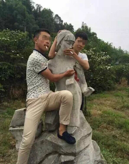 四川宜賓趙場佛現(xiàn)山景區(qū)花開正艷,卻出現(xiàn)了與美景相悖的不文明行為。兩男子近日對一婦女雕像又是摟抱又是摸胸。據(jù)了解,雕像是兩年前計生文化進景區(qū)時設置的。目前,拍攝時間和兩男子身份尚不明確??达L景還是煞風景?