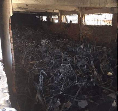 今天凌晨1點(diǎn)半左右,鄭州二七區(qū)新浦街5號院的電動(dòng)車棚突發(fā)火災(zāi),近百輛電動(dòng)車被燒成骨架。據(jù)目擊者稱,電動(dòng)車充電時(shí)爆炸引發(fā)火災(zāi)。小區(qū)居民稱,小區(qū)消防通道不暢,消防栓竟然沒有一滴水,耽誤了最佳撲救時(shí)間。
