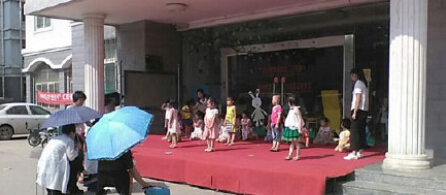 4、鄭州一幼兒園孩子烈日下排練 園長(zhǎng)撐傘觀看