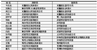 七大軍區(qū)中,南京、成都、北京以及沈陽(yáng)軍區(qū)的副政委職務(wù)均有變動(dòng)。例如,成都軍區(qū)原副政委張書(shū)國(guó)調(diào)往北京軍區(qū)出任政治部主任,接替他的是南京軍區(qū)原副政委白呂;沈陽(yáng)軍區(qū)的原副政委侯賀華外調(diào)至軍事科學(xué)院;另如,成都軍區(qū)原副政委陳平華調(diào)至二炮任副政委;姚立功也是在武警政治部主任與武警部隊(duì)副政委間調(diào)整。此外,空軍內(nèi)所涉及的副大軍區(qū)級(jí)調(diào)整也都是與政治干部有關(guān)系。