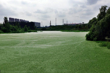 這不是草地,這是西流湖。近段時(shí)間,鄭州西流湖多次遭受污染,除了湖面瘋長(zhǎng)的浮萍外,大量死魚還漂浮在湖面上。