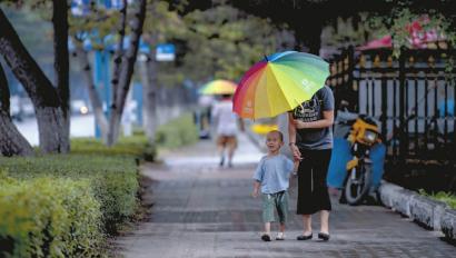 昨日下午3點(diǎn)左右,長(zhǎng)春上空開(kāi)始下起小雨。南湖大路上一位母親剛剛接到幼兒園放學(xué)的孩子 新文化記者 郭亮 攝