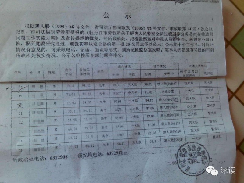 日前,有多名黑龍江省牡丹江市強制戒毒所(原勞教所)在職及退休干警通過爆料平臺向深讀爆料稱,該單位原副所長為了能讓兒子進入勞教所工作,通過虛構出生年月的手段造假,使其兒子順利進入勞教所工作,并在入黨后被提拔成為單位的中層干部。
