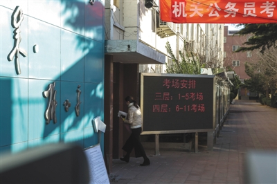 今年國(guó)考北京全市共設(shè)置了100個(gè)考點(diǎn)。昨日,記者來(lái)到北京林業(yè)大學(xué)第二教學(xué)樓的考點(diǎn)。11時(shí)許,考生結(jié)束了行政能力測(cè)試的考試離開考場(chǎng)。一名考生告訴記者,今年的考題“數(shù)量關(guān)系”部分難度不小,自己沒(méi)有答完?!拔业谝淮螀⒓訃?guó)考,也做過(guò)以前的考卷,但感覺(jué)今年還是比較難,數(shù)學(xué)題有點(diǎn)像奧數(shù),后面沒(méi)做完,有好多是蒙的?!边@位考生說(shuō)。