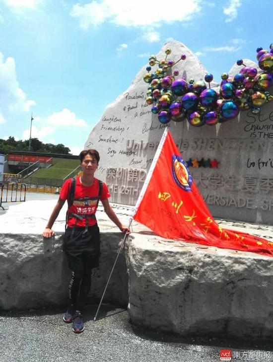 扛校旗跑的理由也很簡單,“愛學(xué)校,就想順便替學(xué)校宣傳一下,沒別的”。許多人因此不理解,譏諷他“想紅想出名”,對此,廖興笑著打趣:“我真不覺得出名是好事,本來我一個人默默地跑,實在累了不行了,還能偷下懶,或者干脆放棄算了,現(xiàn)在行嗎?不行啦。”