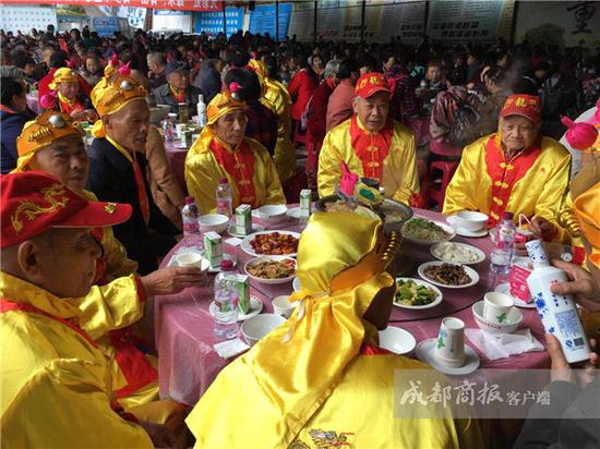 在重陽節(jié)即將來臨之際,來自四川、云南兩省的2000多名老年朋友,歡聚在宜賓縣喜捷鎮(zhèn),當(dāng)?shù)剞r(nóng)民企業(yè)家李興海耗資十余萬元辦了200桌壩壩宴,請老人們過重陽節(jié)。