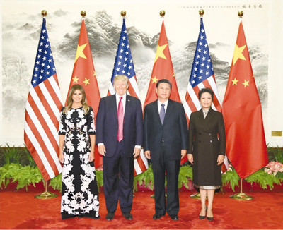 11月9日,國家主席習(xí)近平在北京人民大會堂東門外廣場舉行歡迎儀式,歡迎美利堅合眾國總統(tǒng)唐納德·特朗普對中國進(jìn)行國事訪問。