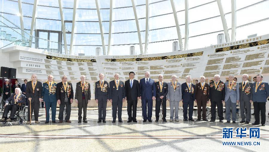 5月11日,國家主席習(xí)近平同白俄羅斯總統(tǒng)盧卡申科在明斯克衛(wèi)國戰(zhàn)爭歷史博物館會見15名白俄羅斯第二次世界大戰(zhàn)老戰(zhàn)士代表。 新華社記者謝環(huán)馳 攝