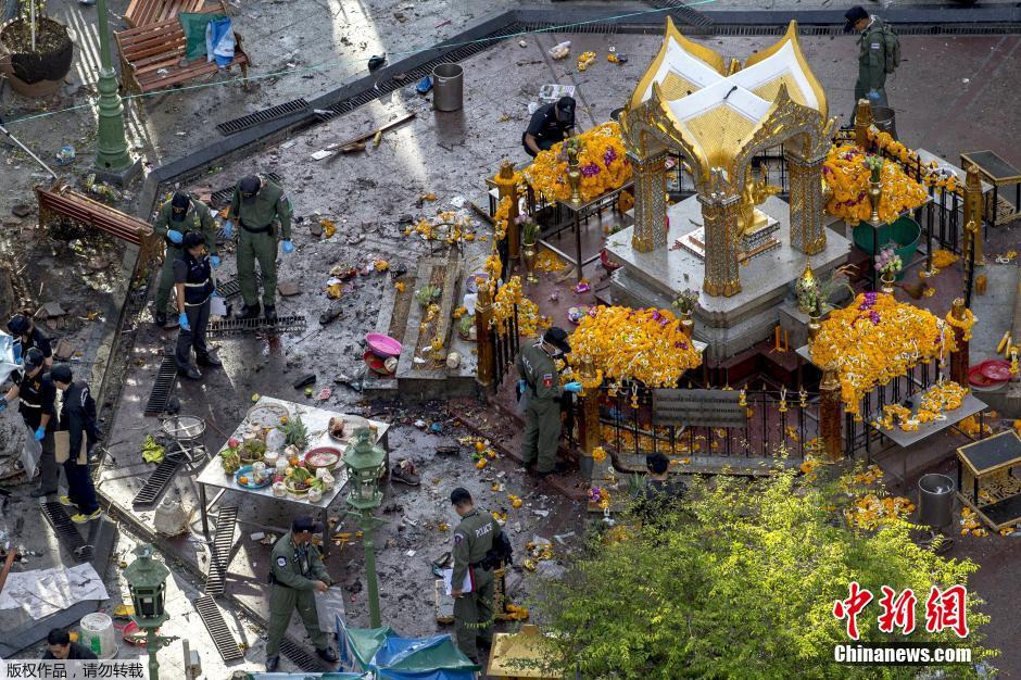 四面佛附近區(qū)域一片狼藉。泰國(guó)總理巴育稱,這起在宗教圣地發(fā)生的炸彈爆炸事件是泰國(guó)遭受的“有史以來(lái)最嚴(yán)重襲擊”。