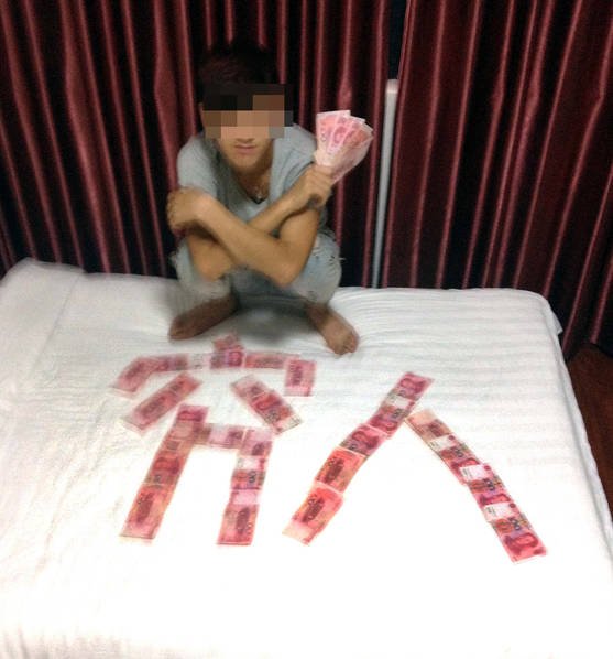 在小偷鄧某隨身帶的手機里,警察還意外發(fā)現(xiàn)了兩張照片,是一名男子和用100元人民幣擺成的“窮人”、“窮不”的字樣的合影。經(jīng)過民警詢問得知,照片上的男子是鄧某的老鄉(xiāng)唐某,這些錢是他第一次行竊的時候偷來的,總共有5100元。由于第一次一次性竊得這么多錢,兩人欣喜若狂,在居住的旅店內(nèi)把百元大鈔盡情的“秀”了一把。警方則根據(jù)照片上的線索順藤摸瓜,在廣東將唐某逮捕。