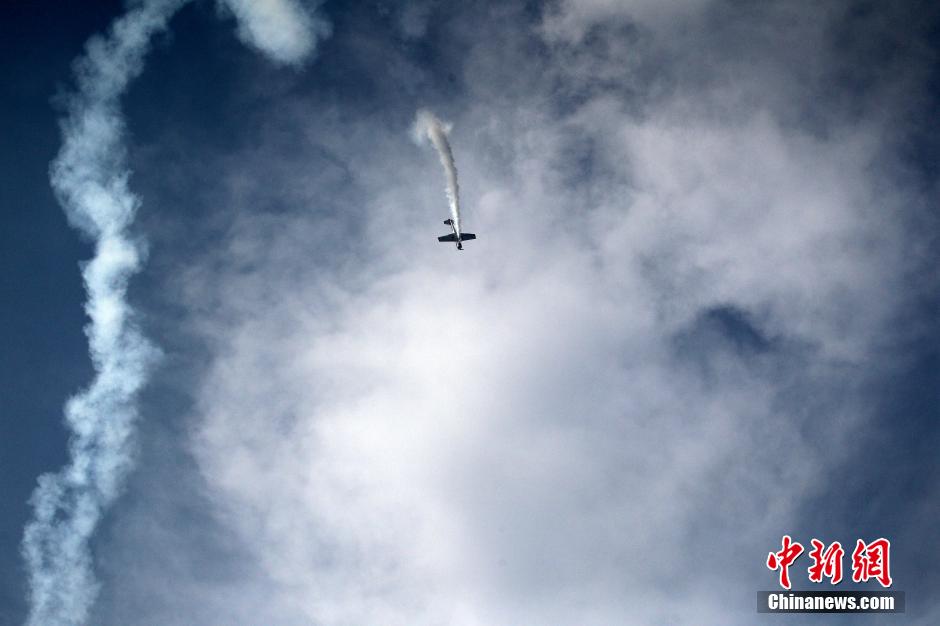 9月24日,河南鄭州上街機(jī)場(chǎng),參加2015鄭州航展的特技飛行員們,穿云破霧在加緊練習(xí)表演動(dòng)作,沖刺9月25日開幕的鄭州航展。中新社記者 王中舉 攝