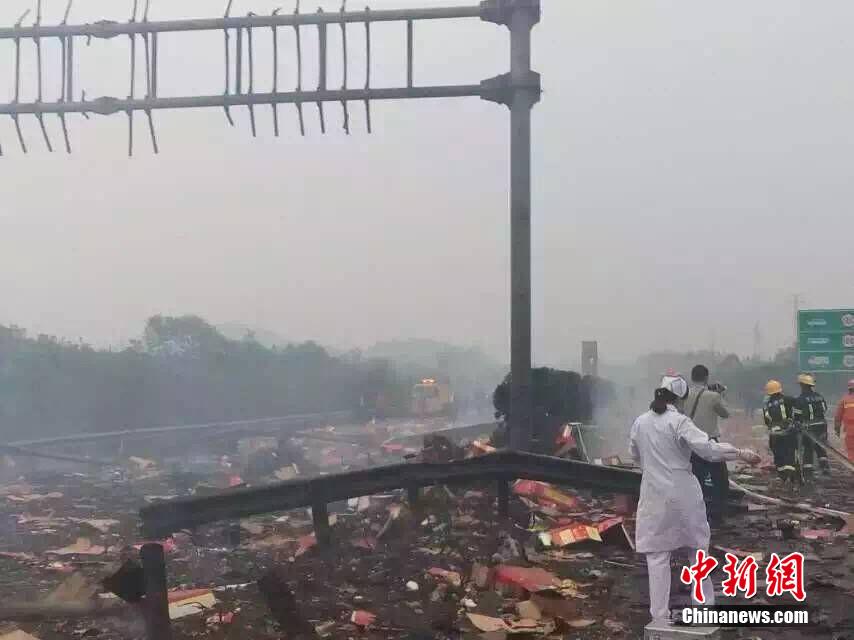 據(jù)江西省高速部門10月30日消息,當日15:20左右,距離滬昆高速公路分宜互通2公里處發(fā)生油罐車爆炸事件,爆炸導致分宜收費站內辦公樓和宿舍大面積玻璃碎裂?,F(xiàn)場圖片顯示,有大量煙花爆竹燃燒痕跡。目前,江西省高速、交警、醫(yī)護、消防等相關部門已在現(xiàn)場。事故情況正在進一步核實中,傷亡情況未知。(李琴 攝)