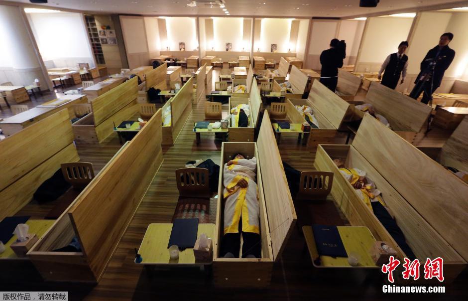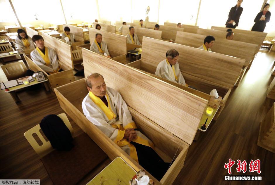 韓國社會近來興起一股“模擬葬禮”風(fēng)潮,以這種另類的方式幫助人們減壓、調(diào)整人生航向。據(jù)報道稱,韓國的自殺率不斷上漲,每天都有多達(dá)40人自殺。專家認(rèn)為韓國過于激烈的競爭環(huán)境是導(dǎo)致人們抑郁、自殺的罪魁禍?zhǔn)住J谞柕囊患抑委熤行姆Q,他們推出的“死亡體驗”療法是消除自殺危機的良方。