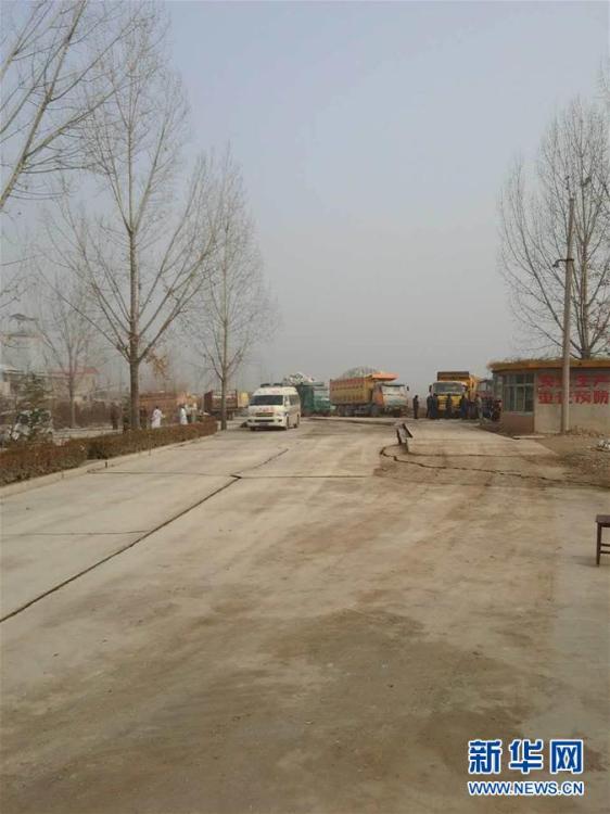 12月25日,山東平邑,位于平邑縣保太鎮(zhèn)的玉榮商貿(mào)有限公司石膏礦發(fā)生坍塌事故。圖為塌陷的道路。視覺(jué)中國(guó)供圖