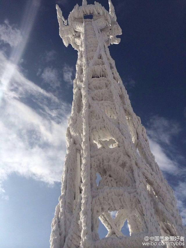 據(jù)網(wǎng)友@中國氣象愛好者 po出一張被冰封的福建九仙山測風(fēng)塔的圖片,雖然美的上天,清理起來恐怕非常麻煩。網(wǎng)友大呼: 冰封王座、 九層妖塔、 至尊冰殿,誰快坐上去。另據(jù)東南快報微博也曬出九仙山美圖:霧凇下的九仙山,太配得起她的名字!山上今天達(dá)到了-12℃!