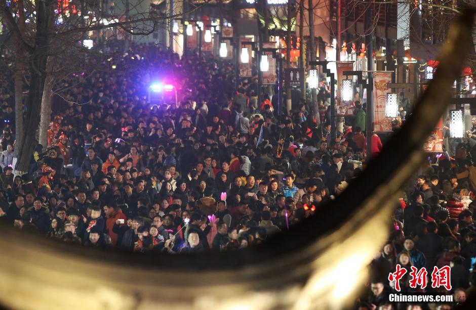 2月22日晚,南京夫子廟廣場上人山人海。當日是元宵節(jié),數(shù)十萬市民和游客涌進南京夫子廟景區(qū)內(nèi)欣賞秦淮燈會,瞬間開啟“人從眾”模式。秦淮燈會又稱“金陵燈會”,是流傳于南京地區(qū)的特色民俗文化活動,主要在每年的春節(jié)至元宵節(jié)期間舉行。 中新社記者 泱波 攝