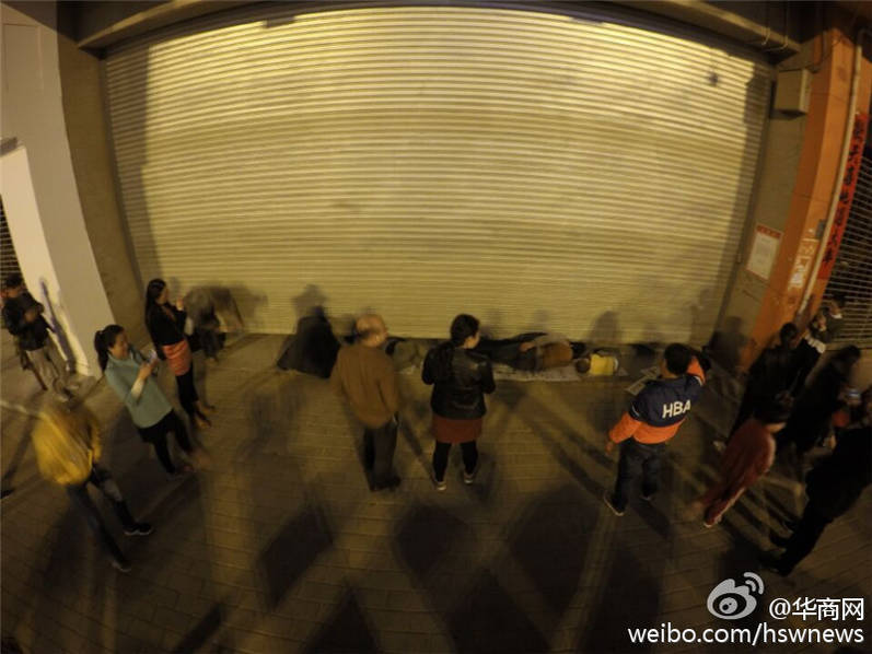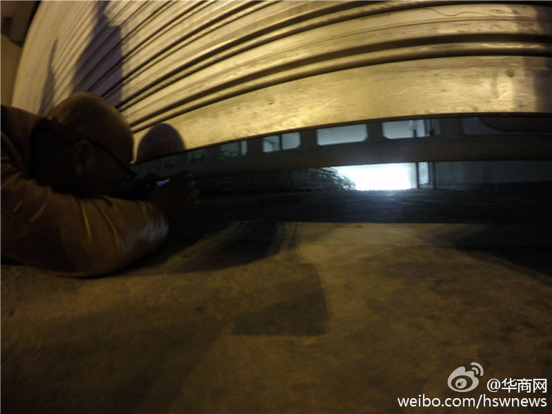 圖為沒買到票的球迷躺地上透過門縫觀看比賽。