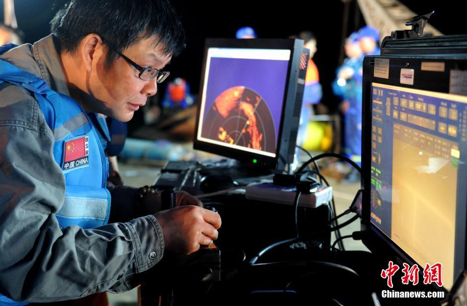6月7日凌晨,專家正在操作水下機器人對沉船內部進行查勘。當日,四川廣元沉船事故救援現場,參與救援的水下機器人先后兩次下水,并通過攝像頭在翻沉的“雙龍”號船內發(fā)現有遇難者以及一些漂浮物品。中新社記者 劉忠俊 攝