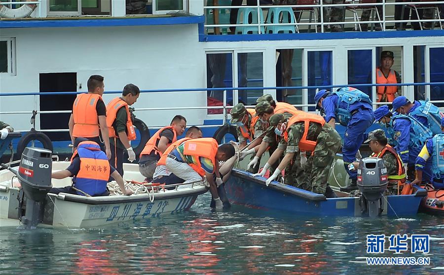 打撈遺體現場。截至目前,這起事故已造成2人死亡、13人失蹤,搜救工作仍在進行中。 新華社記者薛玉斌攝 圖片來源:新華網
