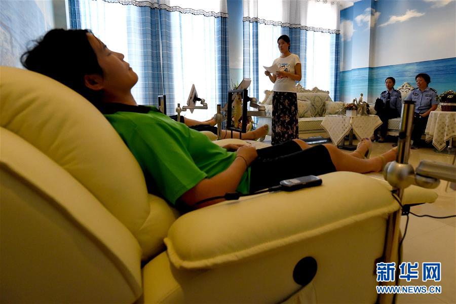 6月26日是國際禁毒日,今年的主題是“無毒青春健康生活”。在禁毒日前夕,記者走進(jìn)了河南省唯一的女子強(qiáng)制隔離戒毒所及唯一的未成年人強(qiáng)制隔離戒毒所。近年來,戒毒所注重對(duì)戒毒人員的溫情關(guān)懷救助,搭建戒毒治療綜合性平臺(tái),努力為戒毒人員打造“溫馨之家”,設(shè)置了瑜伽室、健身室、心理咨詢室等場(chǎng)所,通過開展各種體育鍛煉、心理咨詢、職業(yè)技能培訓(xùn)以及社會(huì)適應(yīng)性教育等活動(dòng),幫助戒毒人員強(qiáng)化體能、修復(fù)身心損害,使他們可以盡快走出困境,融入社會(huì)。新華社記者 李安 攝