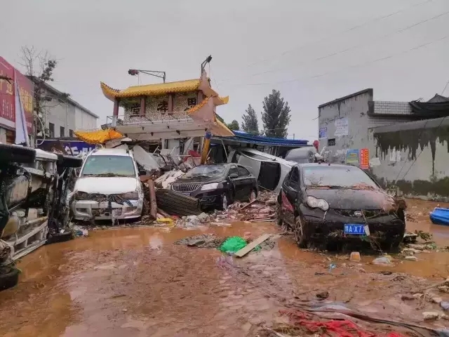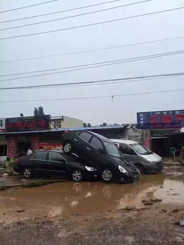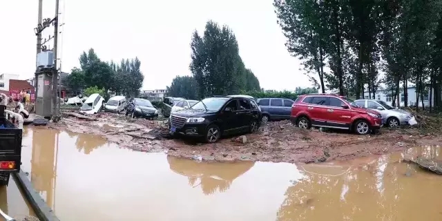 交通癱瘓,房屋坍塌,車輛受損,超市門面大量被淹,輝縣這場百年不遇的天災對輝縣造成巨大損失。