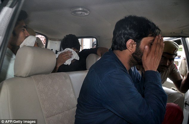 受害女子稱:“我離開學校,看見了他們,相同的5個人。我非常害怕?!笔芎θ烁嬖V當?shù)匾患译娨暸_,“他們強迫我進入車里,試圖扼死我。他們威脅說要殺死我的父親和兄弟?!眻D為3名涉嫌強奸女子的嫌疑人被捕時,用手遮住臉。