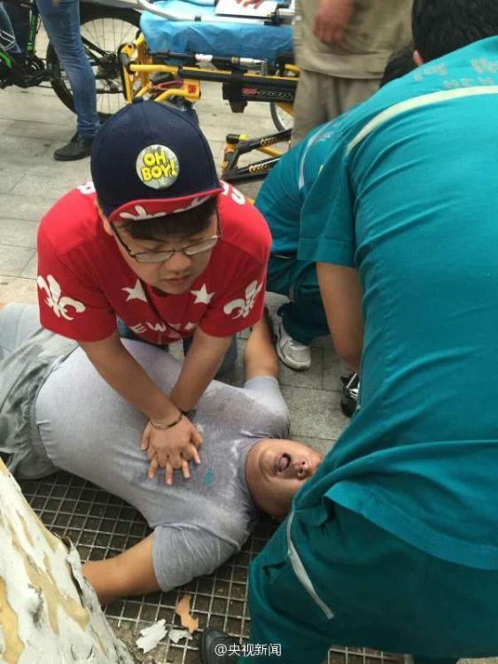 8月9日18點(diǎn)30分,鄭州人民醫(yī)院男護(hù)士李笑展在趕赴約會(huì)的路上,見路邊一50多歲的先生倒地,口唇發(fā)紫呼吸困難,他立即上前對(duì)其采取了胸外按壓急救措施;待急救車趕到,他協(xié)助救援,直到病人病情穩(wěn)定才離開。 央視記者 邱寶華 圖片來(lái)源:央視新聞微博