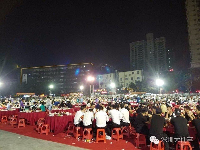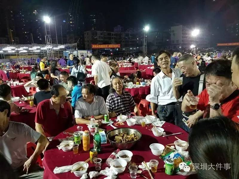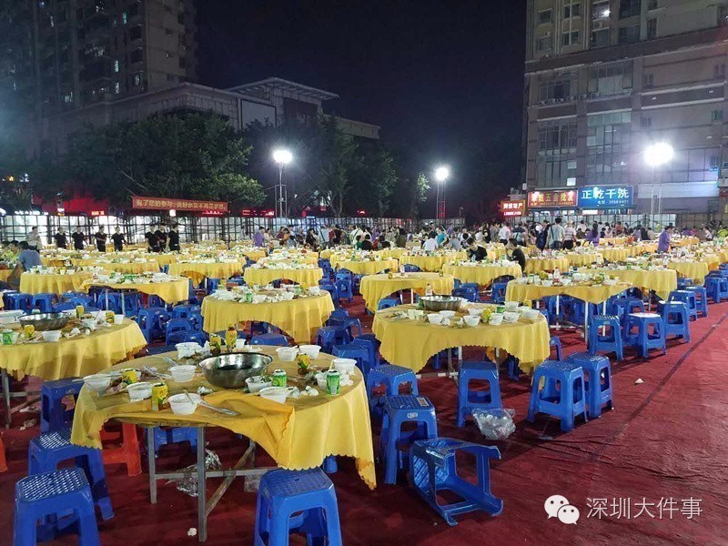 去年,水貝村完成了整體拆遷,因此,這次的盆菜宴,是在水貝舊城的廢墟上騰出的一塊空地上進(jìn)行。