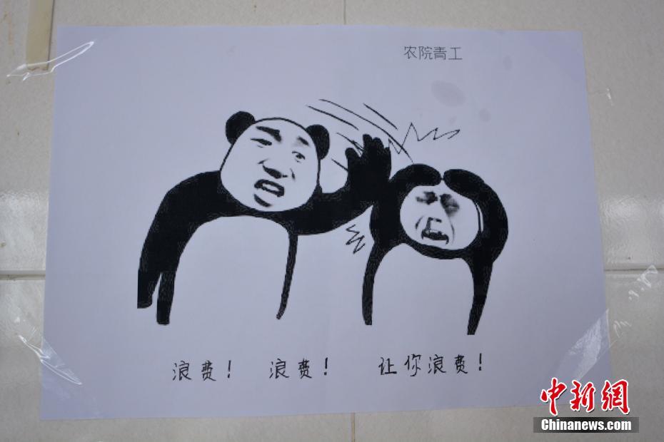 近日,四川農(nóng)業(yè)大學(xué)食堂的“魔性”表情包告示牌在網(wǎng)絡(luò)走紅。告示牌上除了夸張的“魔性”圖案,還配有“吃完盤中餐,不做剩男剩女”、“敢在食堂撒野”、“默默吃著飯”等文字。四川農(nóng)業(yè)大學(xué)工作人員介紹,這組魔性表情包告示牌由該校農(nóng)學(xué)院同學(xué)們自發(fā)創(chuàng)作張貼,目的是為了讓同學(xué)們不要浪費(fèi)糧食,注意排隊(duì)。 四川農(nóng)業(yè)大學(xué)供