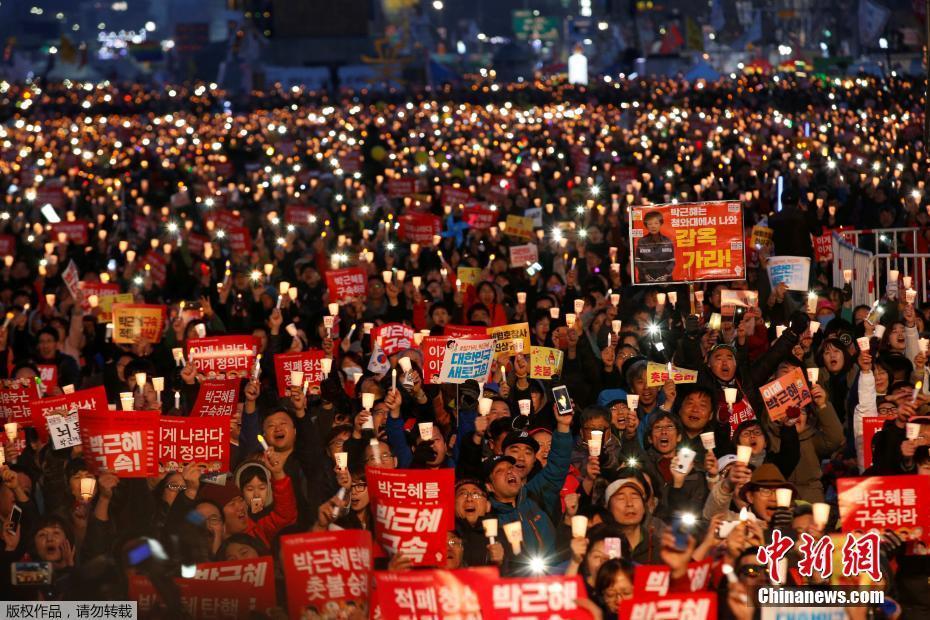 當?shù)貢r間2017年3月11日,韓國首爾,民眾慶祝樸槿惠被彈劾下臺,并要求拘捕樸槿惠。韓國憲法法院10日通過前總統(tǒng)樸槿惠彈劾案后,樸槿惠正式下臺,但她目前仍留在青瓦臺官邸內(nèi),未有公開露面或發(fā)表聲明。知情人士透露,樸槿惠得悉法院裁決后,精神大受打擊,需要時間平復心情,分析認為她至今仍未就裁決表態(tài),是“沉默抗議”裁決。