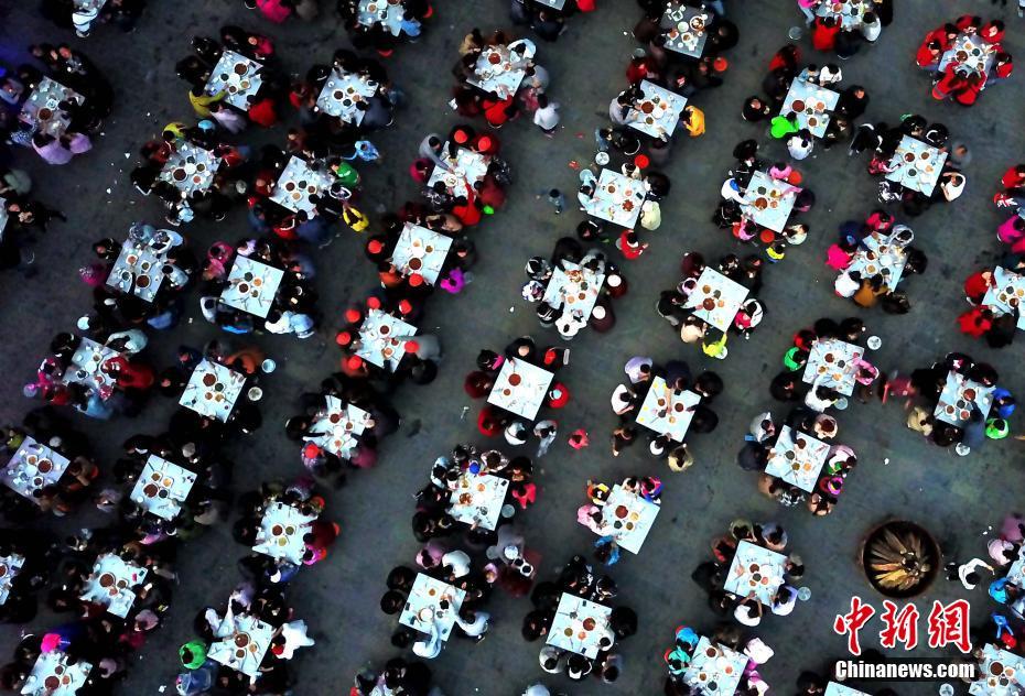 4月22日晚,河南欒川雞冠洞高山牡丹節(jié)開幕,特地舉辦千人牡丹宴,當(dāng)?shù)氐奶厣珯璐ǘ垢?、樹芽菜以及主菜牡丹燕菜紛紛上桌,吸引上千民眾品嘗,場面壯觀。 中新社記者 王中舉 攝