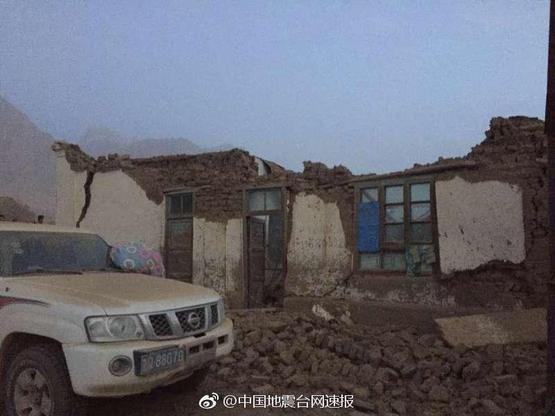 據(jù)新疆地震局官方微博消息,新疆塔什庫爾干縣5月11日晨發(fā)生5.5級(jí)地震,目前初步統(tǒng)計(jì)已造成8人死亡,20多人受傷,180多戶房屋倒塌,789人受災(zāi)。圖為網(wǎng)友拍攝的在地震現(xiàn)場(chǎng)照片。 圖片來源:國家地震臺(tái)網(wǎng)官方微博