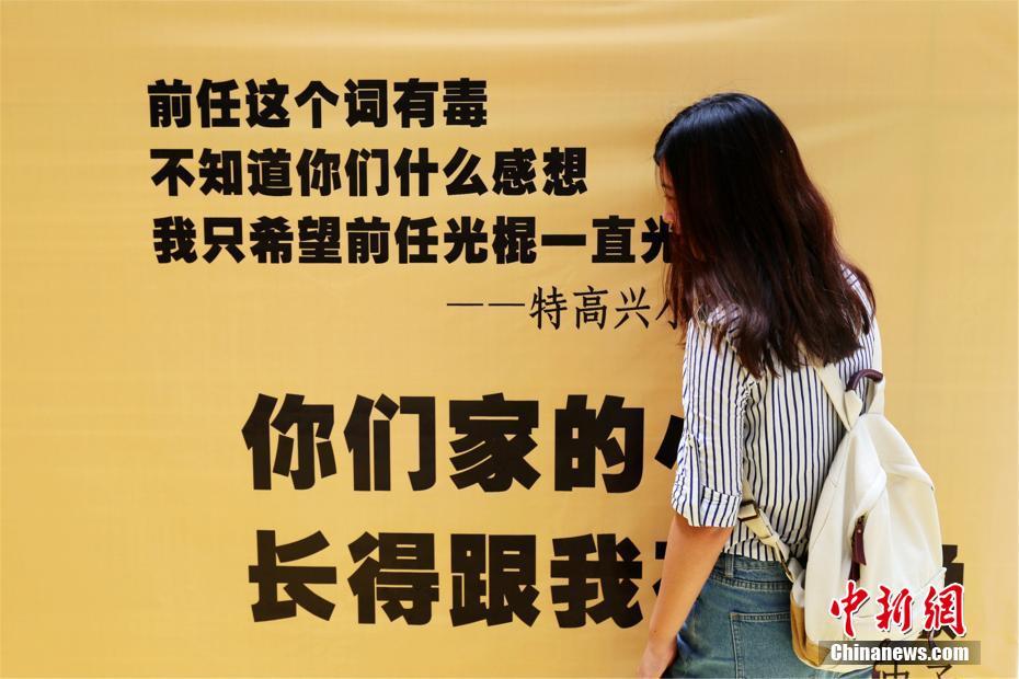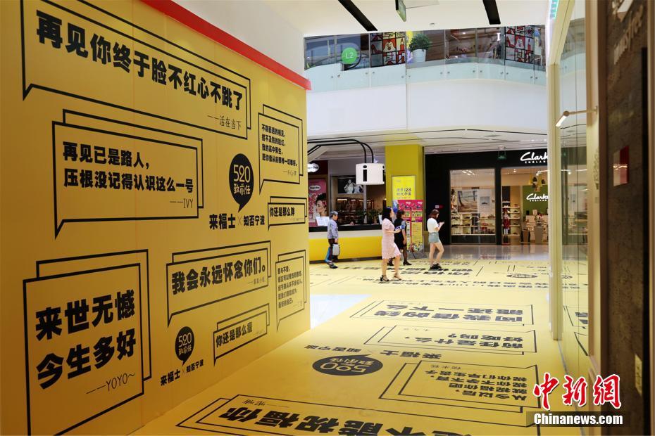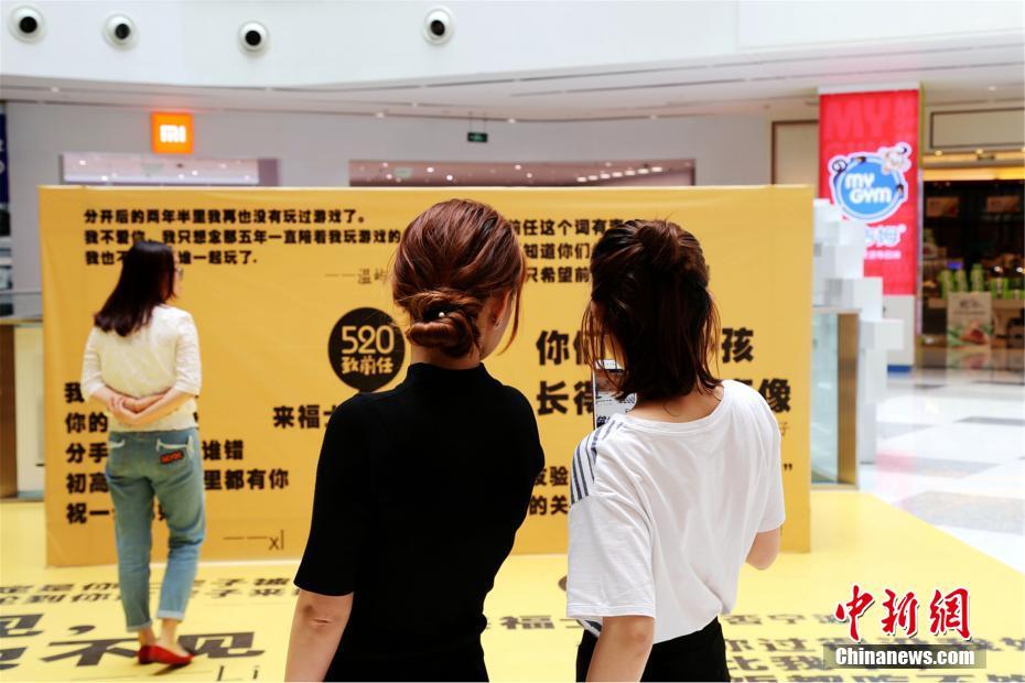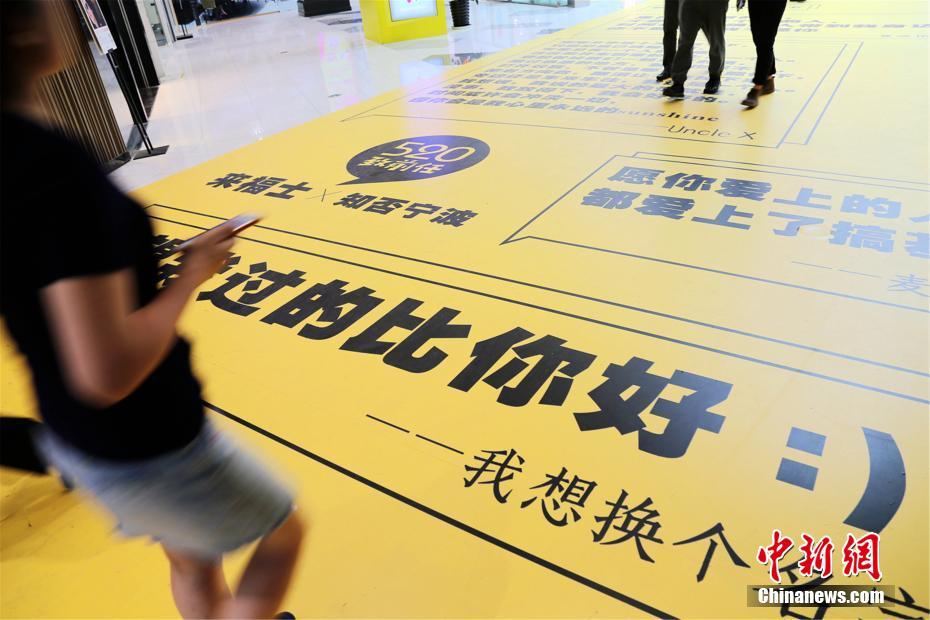 5月18日,在浙江寧波某商場內(nèi),近百條“致前任”留言貼滿了墻壁和地面,引發(fā)不少市民駐留圍觀。據(jù)工作人員介紹,這些句子來自網(wǎng)絡征集,最終篩選了99名網(wǎng)友留言,希望在“520”這一網(wǎng)絡情人節(jié)中,引發(fā)人們對愛的共鳴。尤勤勇 攝