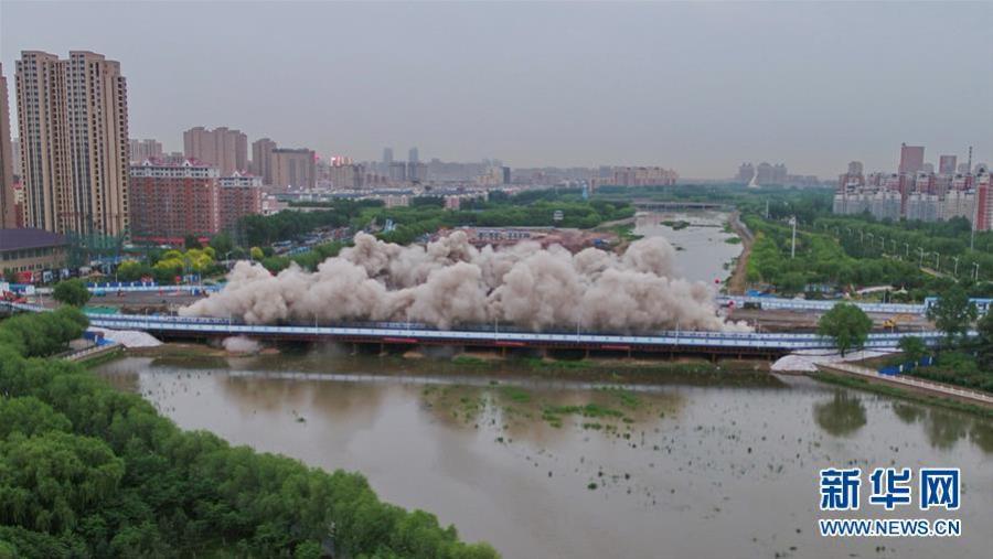 5月31日,長春自由大橋在進行橋面爆破。新華社記者 張楠 攝