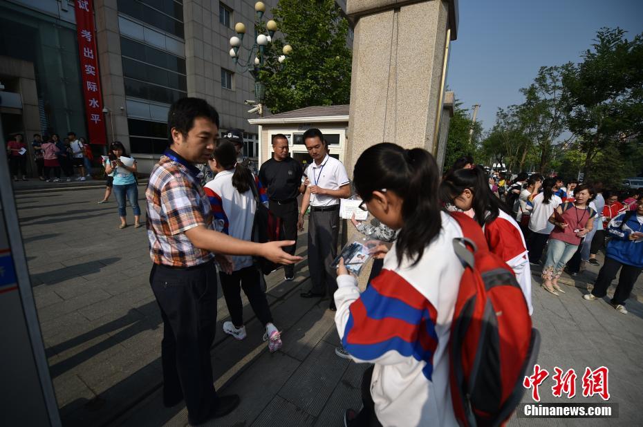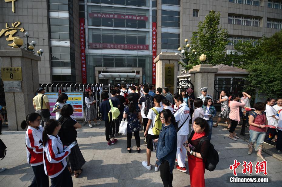 6月7日,2017年高考大幕正式拉開,全國將有940萬考生參加考試。今年可謂是高考歷史上的特殊年份,一方面,今年是高考恢復40周年,另一方面,今年也被稱為“新高考元年”,高考綜合改革試點地區(qū)的考生將迎來首次“新高考”。圖為北京市171中學考點的考生陸續(xù)進入考場。中新網(wǎng)記者 金碩 攝
