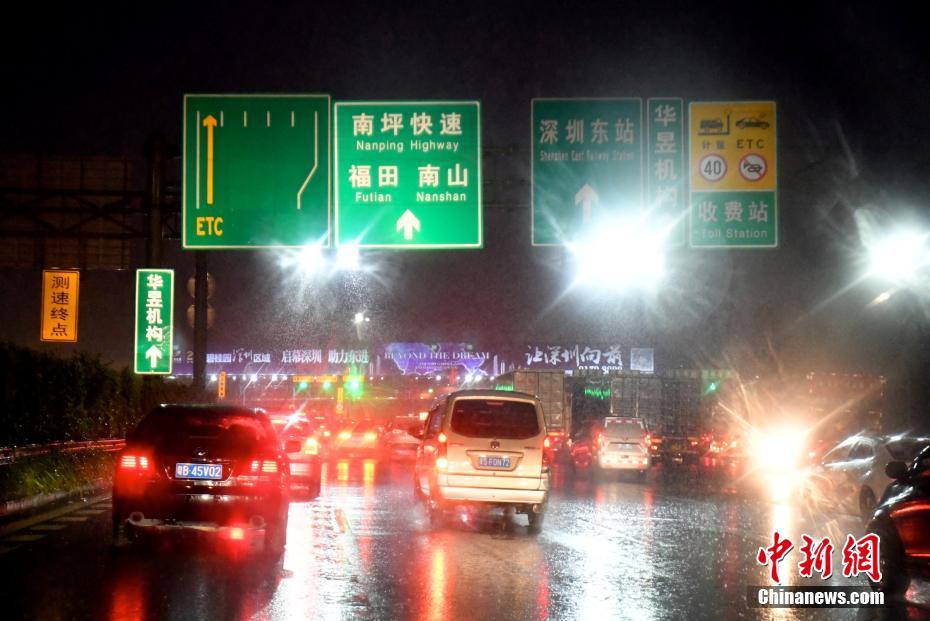 7月18日,深圳普降大暴雨局部特大暴雨,致部分路段嚴(yán)重積水、山體滑坡道路中斷、交通擁堵等險(xiǎn)情。深圳鹽田區(qū)盤山公路恩上路段出現(xiàn)滑坡,無人員、車輛被困;深鹽二通道下沙頭角出口匝道中間因山水傾瀉,道路中斷,交警已經(jīng)實(shí)施了交通管制。當(dāng)?shù)貧庀蟛块T先后發(fā)布了雷電、暴雨黃色、暴雨橙色和暴雨紅色分區(qū)預(yù)警信號。圖為深圳南坪快速路段車輛行駛緩慢。中新社記者 陳文 攝