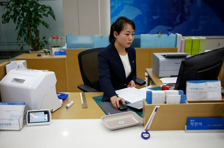 在開(kāi)城工業(yè)園區(qū)內(nèi)銀行工作的朝鮮員工。