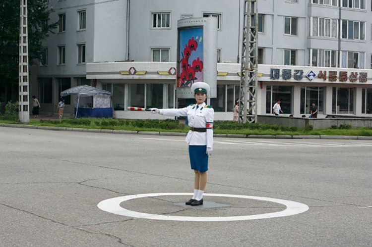平壤站內(nèi)正在等待地鐵的一位站長(zhǎng)。