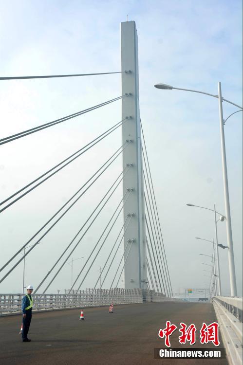 11月30日,港珠澳大橋橋面鋪裝工程已經(jīng)完成,其他收尾工作仍在進(jìn)行中,為大橋具備年底通車條件做準(zhǔn)備。據(jù)了解,港珠澳大橋主體工程近23公里的橋梁,首次在橋梁工程上部結(jié)構(gòu)大規(guī)模采用鋼結(jié)構(gòu),用鋼量達(dá)40多萬(wàn)噸,足以建造60座埃菲爾鐵塔。 中新社記者 鄧媛雯 攝