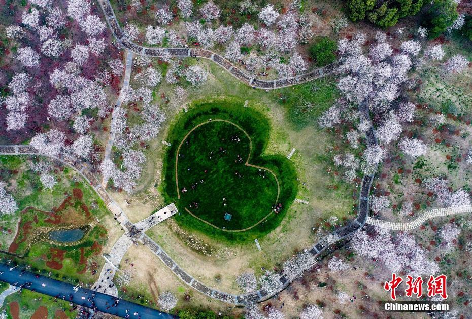 3月17日,游客在江西南昌鳳凰溝景區(qū)游玩。連日來,江西南昌鳳凰溝萬株櫻花盛放,形成延綿萬米的櫻花隧道,場面極為壯觀,前來賞花的游人絡(luò)繹不絕。圖為“心形”草坪與櫻花交相輝映,畫面十分唯美。
