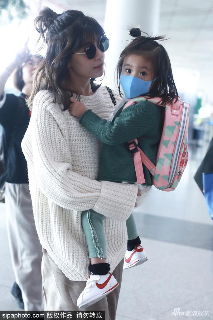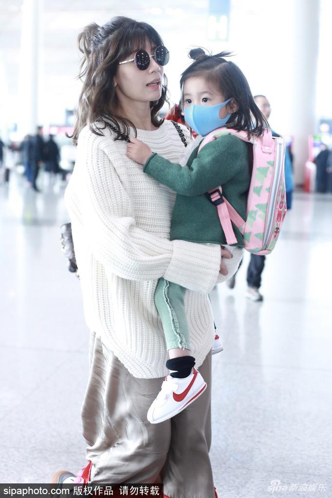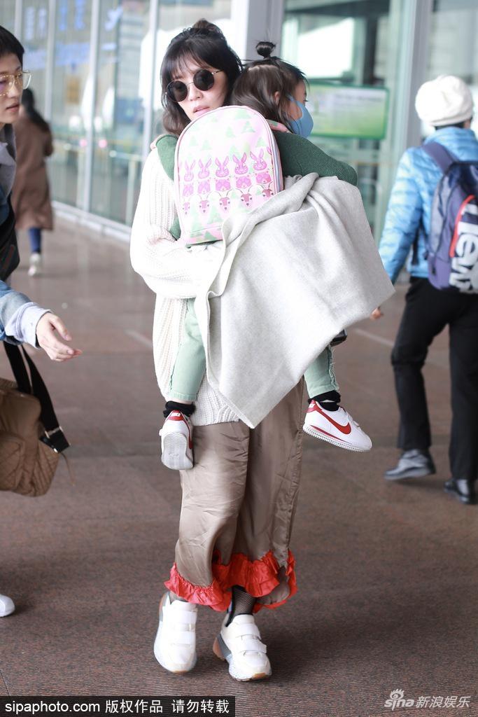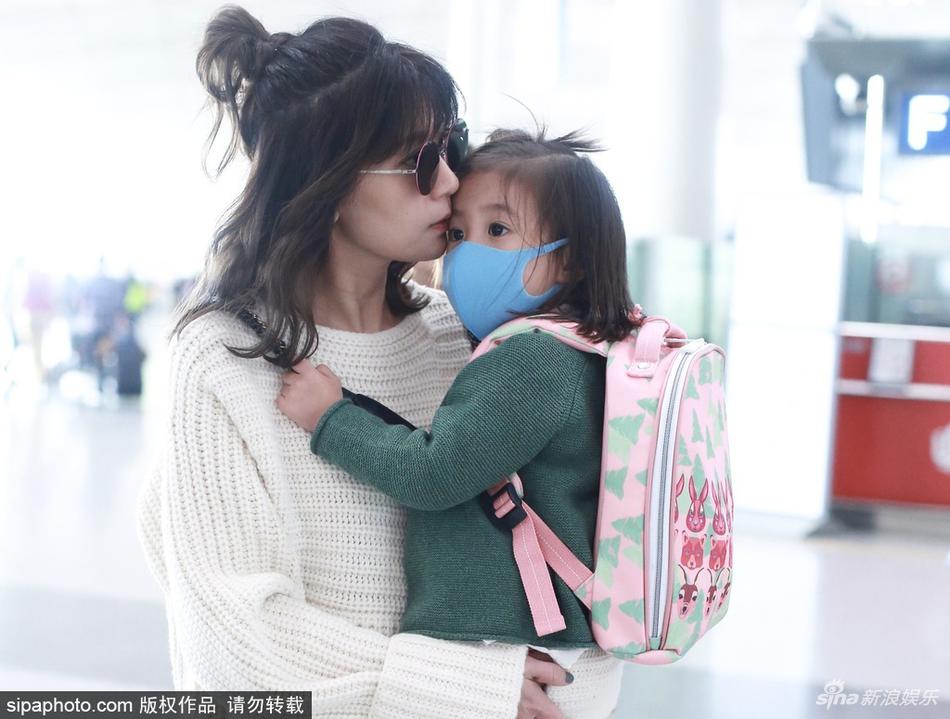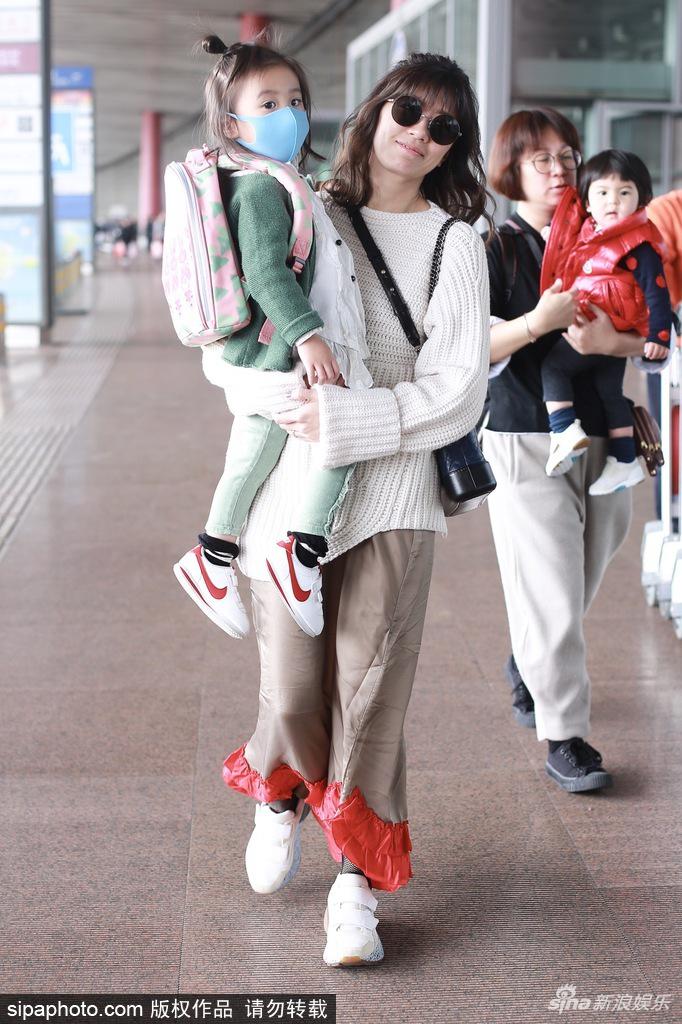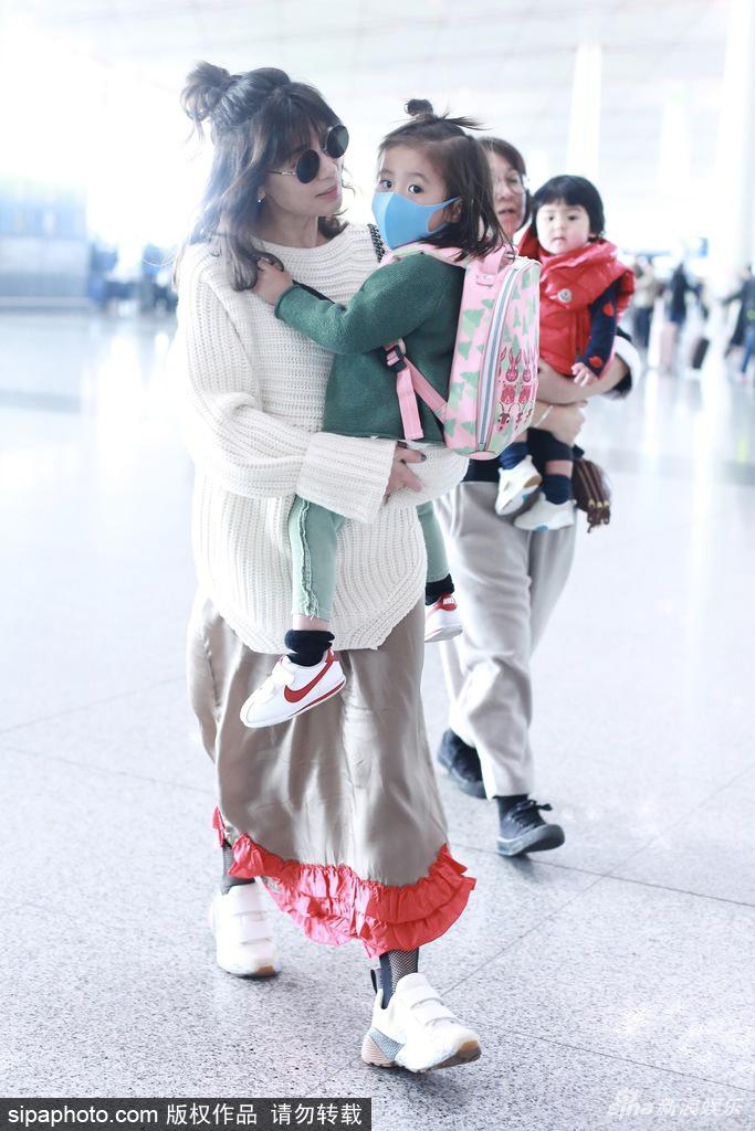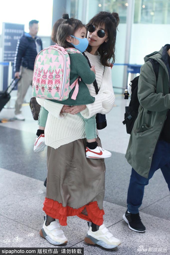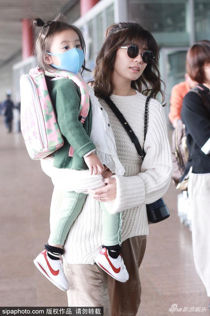 2018年3月20日,北京,賈靜雯抱女兒咘咘現(xiàn)身北京機(jī)場。
