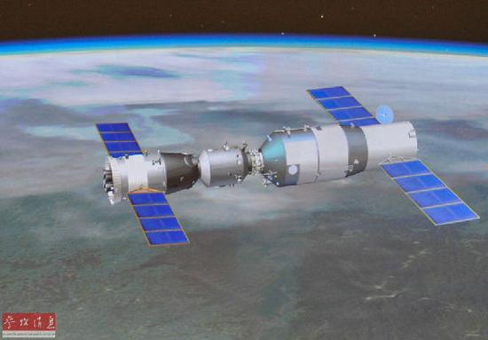 資料圖:神舟十號(hào)與天宮一號(hào)自動(dòng)交會(huì)對(duì)接成功的模擬畫面。