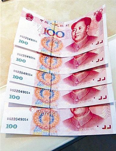 中新網(wǎng)6月19日電 據(jù)香港《星島日?qǐng)?bào)》報(bào)道,一女子昨(18日)到聯(lián)合道樂富廣場(chǎng)一銀行存款,被揭發(fā)其中14張100元面額人民幣疑是偽鈔,驚動(dòng)警方將其拘捕,連同懷疑“假人仔”帶署調(diào)查,據(jù)悉內(nèi)地近日發(fā)現(xiàn)新一批仿真度極高、鈔票編號(hào)相同假人民幣,香港警方正追查是否有新的“假人仔”流入香港。
