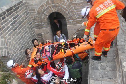 人民網(wǎng)北京10月21日電 據(jù)北京市公安局官方微博消息,昨日,北京消防接到報(bào)警稱(chēng)一名游客被困野長(zhǎng)城,到達(dá)現(xiàn)場(chǎng)后發(fā)現(xiàn)被困者是一名60歲左右外籍女游客,因踩到碎石不慎摔傷,多處骨折,右肩脫臼并有輕微腦震蕩。消防官兵利用軀體固定氣囊,將被困者固定。經(jīng)1個(gè)小時(shí)艱難跋涉,終將被困者送到山下。