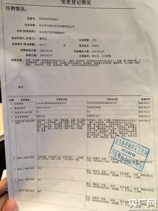 對(duì)此,王安培在接受記者采訪時(shí)稱,自己在2009年退休前,的確是電站工會(huì)主席,但江南天池公司和電站沒有關(guān)系:“我退休之前是電站的工會(huì)主席,09年退休,之前是不能搞三產(chǎn)的,這個(gè)我們是有規(guī)定的。10年推我當(dāng)董事長,變更法人成我的。錢源是我們退休的老同志,大家出點(diǎn)錢,在杭州注冊(cè)了一家錢源公司,拿了一點(diǎn)錢在安吉搞了一個(gè)江南天池度假村,和原來的三產(chǎn)沒有延續(xù)。”