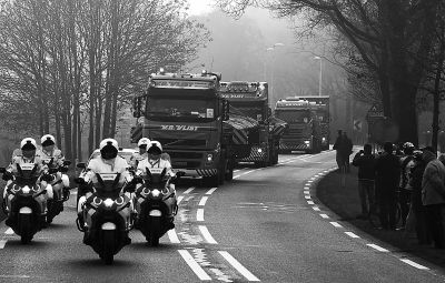 12月9日,裝載馬航MH17航班殘骸的卡車抵達荷蘭南部的希爾澤-賴恩空軍基地。新華社/美聯(lián)